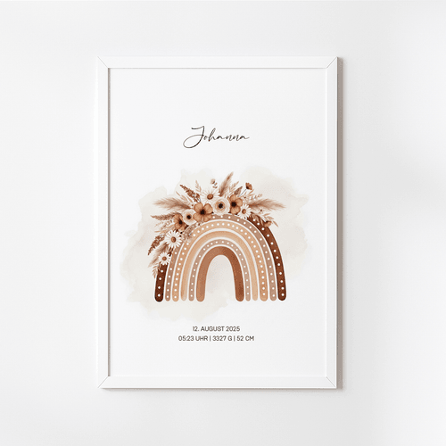 Geburtsposter REGENBOGEN BOHO mit Name und Daten