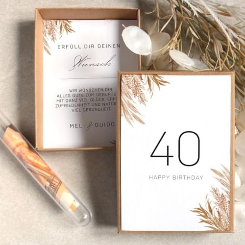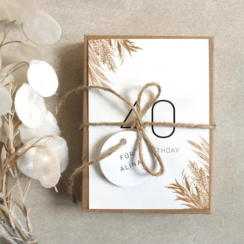 -Herzliche Botschaft im Inneren: Beim Öffnen der Box wird das Geburtstagskind von einer zauberhaften Botschaft überrascht, die direkt auf die Innenseite gedruckt ist. Diese Botschaft kann auf Wunsch mit deinem Namen oder euren Namen personalisiert werden, was dem Geschenk eine sehr persönliche Note verleiht.