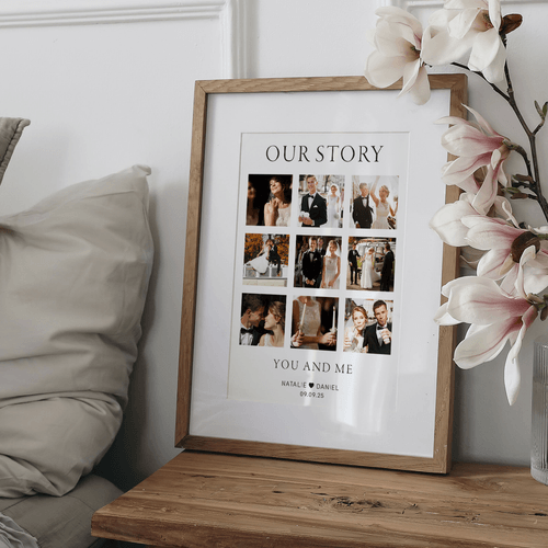 Dann ist dieses Poster genau das Richtige für dich. Es ist die perfekte Möglichkeit, euren schönsten Tag mit all den liebevollen Details zu verewigen. Halte die wichtigsten Momente eurer Hochzeit fest und schaffe ein Kunstwerk, das die Geschichte eurer Liebe erzählt.