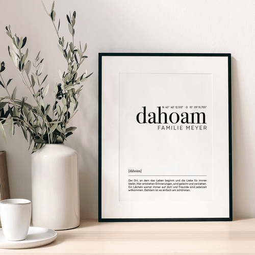 Zuhause Poster DAHOAM mit GPS Koordinaten und Name