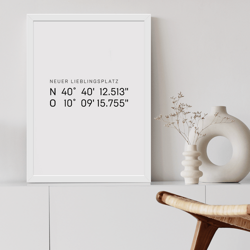 Suchst du nach einem wirklich einzigartigen und bedeutungsvollen Geschenk zum Einzug? Oder möchtest du deinem eigenen Zuhause eine ganz persönliche Note verleihen, die mehr als nur Dekoration ist? Dann ist unser personalisiertes Plakat mit den GPS-Koordinaten deines Wohnortes genau das Richtige für dich!